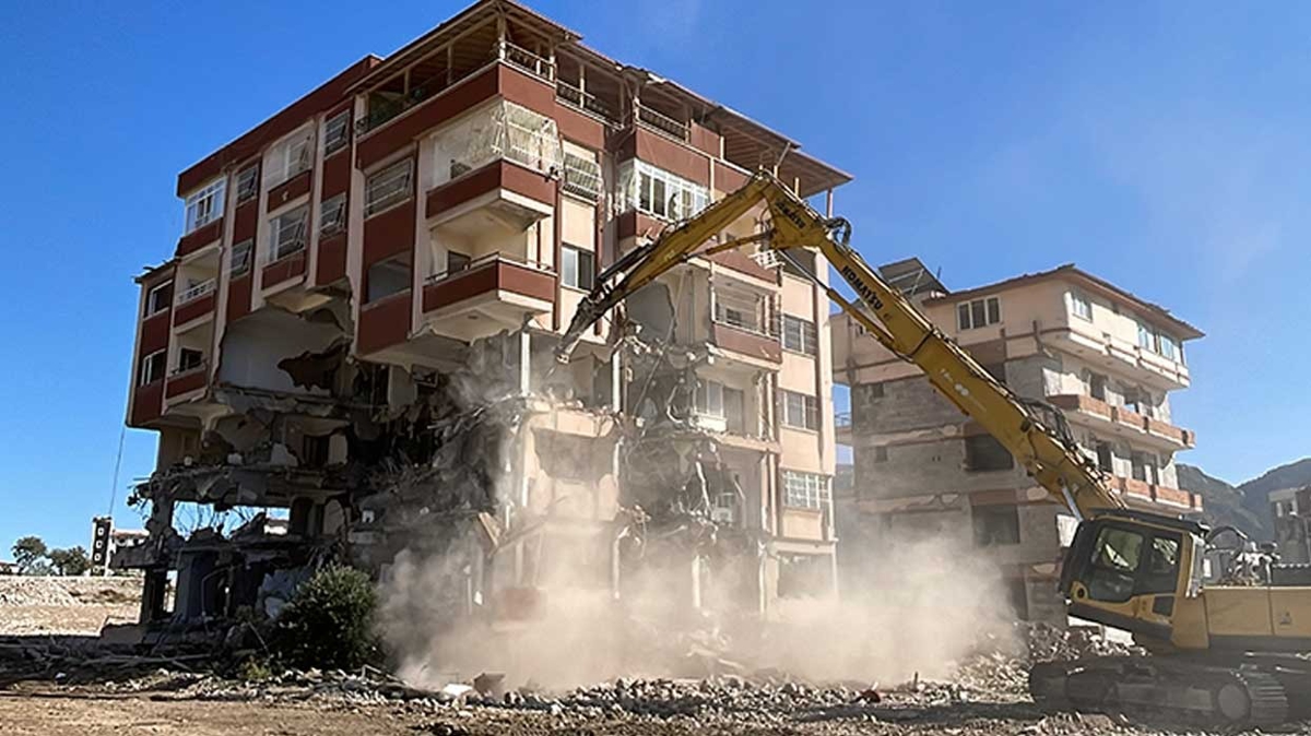 Merkez Antakya ilçesinde, 6 Şubat'taki afetin ardından yıkım kararı verilen yapılarda çalışmalar devam etti.