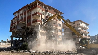 Kahramanmaraş merkezli depremlerden etkilenen Hatay'da, ağır hasarlı 4 binanın kontrollü yıkımı gerçekleştirildi.