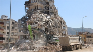 Depremlerden etkilenen Hatay'da ağır hasarlı binaların yıkımı sürüyor