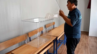Kentte, vatandaşların oy verecekleri salonlarda hazırlıklar yapılıyor.
