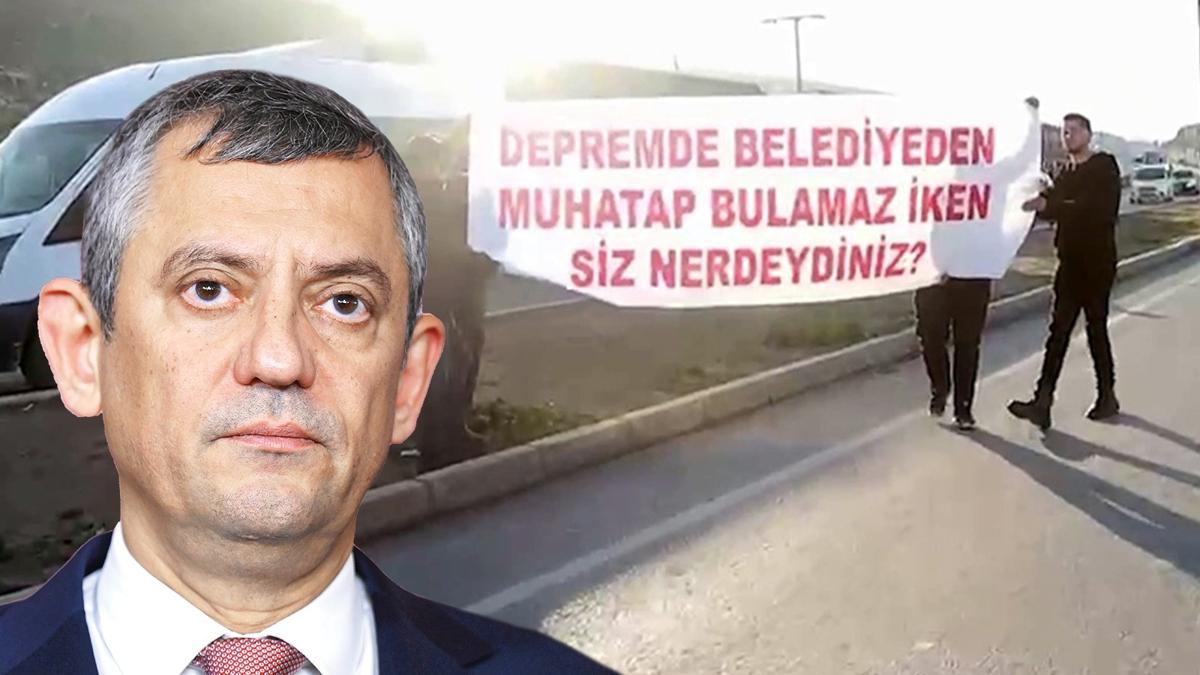 Basın açıklaması dönüşü Reyhanlı ilçesinde depremzede vatandaşlar CHP lideri Özel'e tepki gösterdiler. Tepkili vatandaşlar, 'Enkazdan daha ağır olan depremden bu güne CHP'nin yokluğudur' ve 'Depremde belediyede muhatap bulamaz iken siz neredeydiniz' pankartı açarak fikirlerini dile getirdiler.