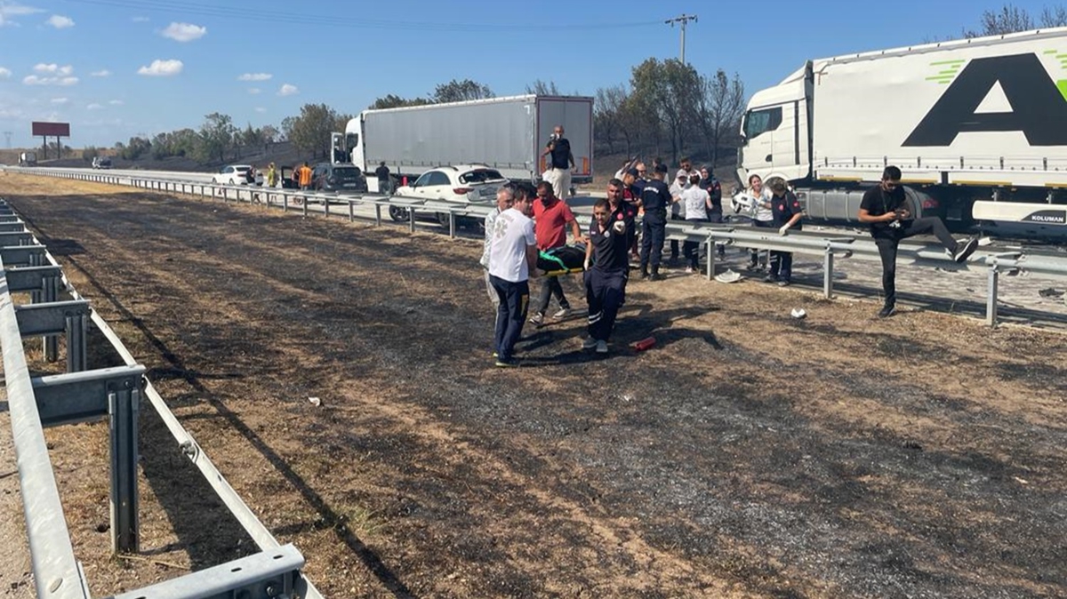 Yangının olduğu bölgede 8 otomobil, 3 tır ve 1 kamyonun karıştığı zincirleme trafik kazası meydana geldi.