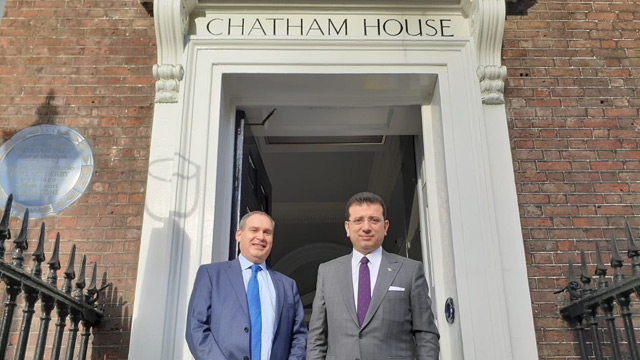 Koç Holding’in kurumsal ortağı olduğu ‘düşünce kuruluşu’ Chatham House’ı ziyaret eden İmamoğlu, enstitünün başkan yardımcısı Sir Simon Fraser ve ekibiyle bir araya geldi.
