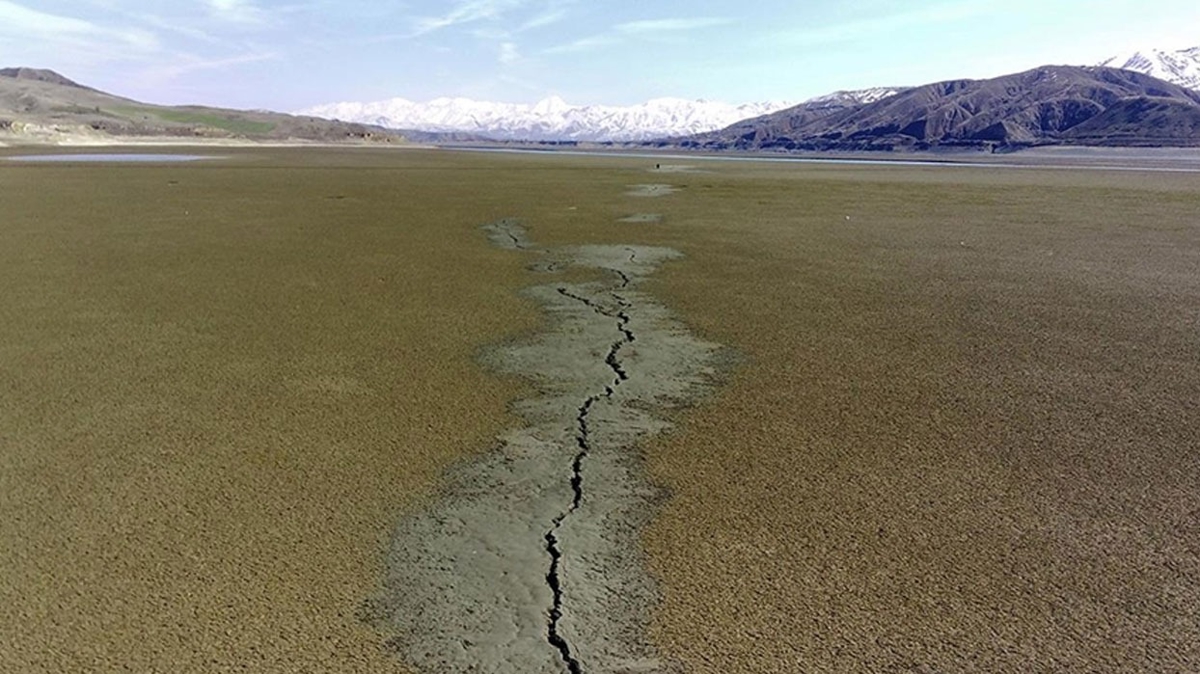 Elazığ'da 17 Şubat'ta meydana gelen 4,6 büyüklüğündeki depremin ardından suların çekildiği Keban Baraj Gölü sahasındaki yaklaşık 20 kilometrelik fay hattında yarıklar oluşturan zemin sıvılaşması dron ile görüntülendi.