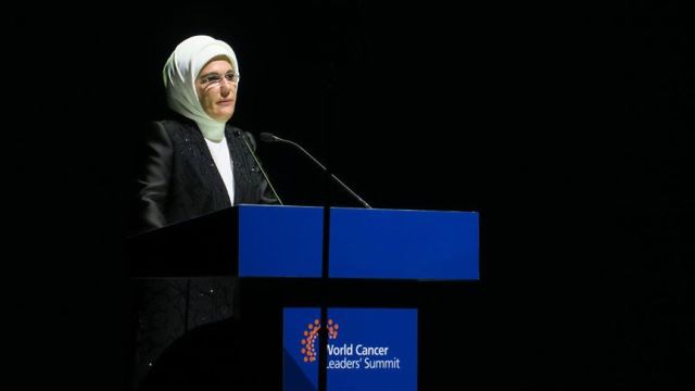 Dünyada her yıl 10 milyona yakın insanın hayatını kaybetmesine yol açan sorunla karşı karşıya olduklarını belirten Emine Erdoğan, kansere bağlı ölümlerin yüzde 70'inin düşük gelirli ülkelerde yaşanması sorununun bir yönetim ve liderlik meselesinden ayrı düşünülemeyeceğini ortaya koyduğunu söyledi.