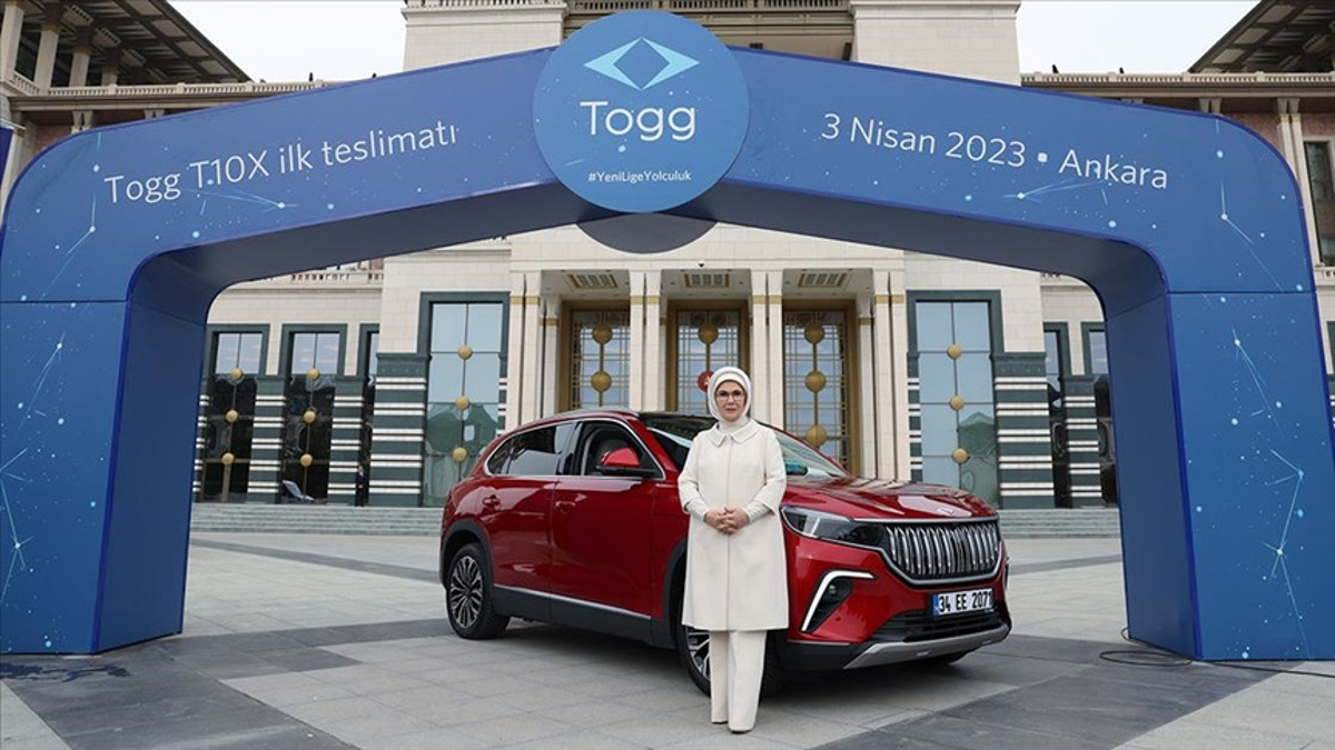 Başkan Recep Tayyip Erdoğan'ın eşi Emine Erdoğan, "İlk onaylı seri üretim aracını sipariş ettiğimiz, yerli ve milli otomobilimiz Togg'un anahtarını teslim aldık. Büyük bir gurur ve mutluluk içerisindeyiz." ifadesini kullandı.