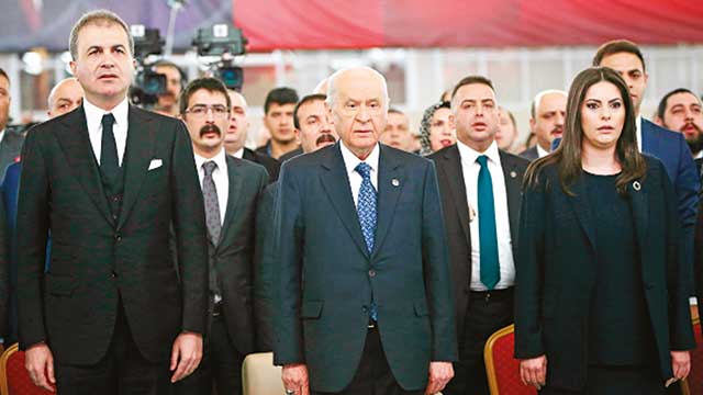 Bahçeli sözlerini şöyle sürdürdü: “Allah'tan emperyalizmin piyonu değiliz. Allah muhafaza, terör örgütlerinin taşeronluğuna heves etmiyoruz. YPG’ye 'vatanlarını savunanlar', hendek kazan teröristlere 'arkadaş' demiyoruz. 15 Temmuz’a 'tiyatro' diyen alçalmanın muhatabı değiliz. Evet bekçiyiz, kalpleri imanla çarpan vatan bekçileriyiz.
