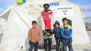 Kahramanmaraş'a 6 Şubat meydana gelen depremler sonrasında gelen Afrikalı 3 öğrenci, Afşin ilçesinde afetzede çocukların sosyal etkinliklerine eşlik ediyor. Bartın Üniversitesi'nde eğitim gören 31 yaşındaki Gambiyalı Abdullah Amadue, 24 yaşındaki Nijerli Hüseyin Ahmed ve 24 yaşındaki Burkina Fasolu Hamza İdrissa, Türk Kızılay gönüllüsü olarak ilçede yürütülen çalışmalara katılıyor. Öğrenciler, çadır kentlerde düzenlenen sosyal aktivitelerde çocuklara oyun arkadaşlığı yapıyor.