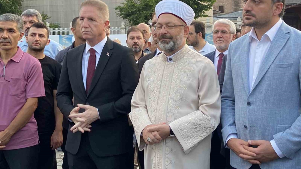 Namaz sonrası açıklama yapan Diyanet İşleri Başkanı Prof. Dr. Ali Erbaş, "Ayasofya'nın önünden bütün milletimizi selamlıyorum. Bugün en mutlu günlerimizden, en mutlu anlarımızdan birisini idrak ediyoruz. Bundan üç sene önce yine 24 Temmuz'da 2020 yılında 86 yıllık hasret son bulmuştu. Sayın Cumhurbaşkanımızın kararıyla Ayasofya yeniden ibadete açılmış idi. İşte üç yıl geçti. Üç yılda yapılan araştırmalara göre Ayasofya'yı 21 milyon insan ziyaret etti. Ben diyorum ki inşallah kıyamete kadar milyonlarca insan Ayasofya'da kıyam eder, rüku eder. Secde eder, ibadet eder. Ayasofya Fatih'in bize bir emaneti, İstanbul'un fethinin en önemli sembolü. Ama 86 yıl boyunca Ayasofya içinde ibadet edilen bir mekan olmadı. Bizim büyüklerimiz ahirete irtihal eden nice insanlar bu hasretle yaşadılar. Bugünleri göremediler. Biz inşallah Ayasofya'yı ömrümüz boyunca içinde ibadet ederek en güzel bir şekilde değerlendirerek ahirete irtihal etmiş olan o hasretle, o özlemle irtihal etmiş olan büyüklerimizin ruhlarını şad etmeye gayret edeceğiz.