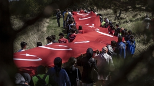 Burada çeşitli yaş gruplarındaki gönüllü gençler, 120 metre uzunluğundaki Türk bayrağı ile yürüyüş gerçekleştirdi.