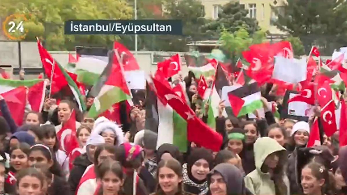 Öğrenciler ellerinde Filistin bayrakları ve dövizlerle okul bahçesinden Eyüpsultan Meydanı'na kadar yürüdü. Yürüyüş sırasında öğrenciler, "Nehirden denize özgür Filistin", "Çocuklar ölürken sessiz kalınmaz", "Katil israil, Filistin'den defol", "Filistin halkı yalnız değildir" ve "Gazze'ye selam, direnişe devam" sloganları atarak Filistin'e destek mesajı verdi.