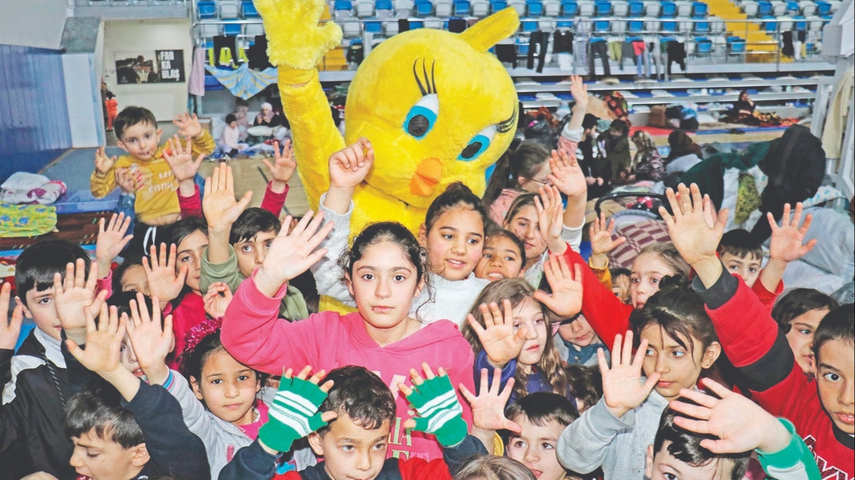 Kentte bulunan bir spor salonunda konaklayan çocuklar, depremde evi ve iş yeri zarar gören ve herkes tarafından tanınan Fenomen Civciv tarafından düzenlenen etkinliklerle güzel vakitler geçiriyor. Hüseyin Güler, namıdiğer 'Fenomen Civciv', çocuklardaki deprem travmasını atmaları için çaba gösterdiğini belirtti.