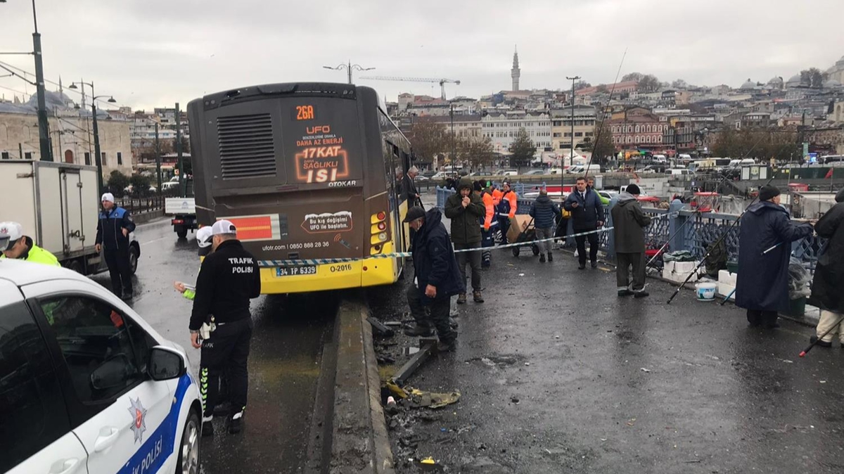 Galata Köprüsü üzerinde İETT otobüsü kaza yaptı: