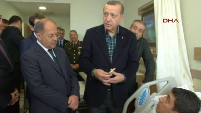 Erdoğan, ziyareti sırasında tedavileri süren yaralılarla sohbet etti. Yaralanan bir polis memuru ile Erdoğan arasında geçen 3 çocuk diyaloğu gülüşmelere neden oldu. Sohbet sırasında yaralı polis, "2 çocuğum var, 3 olacak inşallah" derken Erdoğan'ın, "3 dedik aman ha... 4, 5 Allah ne vediyse." şeklinde verdiği cevap gülüşmelere neden oldu.