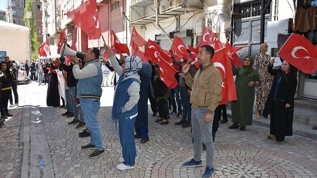 Cumhuriyet Caddesi'nde bir araya gelen aileler, ellerinde pankartlar, Türk bayrakları ve çocuklarının fotoğraflarıyla HDP İl Başkanlığı binasının önüne kadar yürüdü.