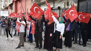 HDP ve terör örgütü PKK aleyhine slogan atarak tepkilerini ortaya koyan aileler, çocuklarına seslerini duyurmaya çalıştı.