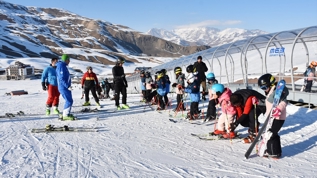 Türkiye Kayak Federasyonu tarafından hazırlanan "Alp Disiplini Altyapı Gelişim Projesi"nin uygulandığı Hakkari'de, seçmelerden geçen çocuklara kayak eğitimi veriliyor.