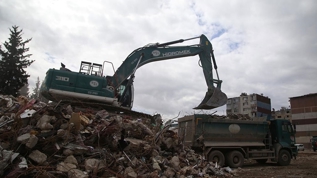 Hatay'ın Antakya ve Defne ilçelerinde hasarlı binaların yıkımlarına ve enkaz kaldırma çalışmalarına 30 mahallede devam ediliyor.