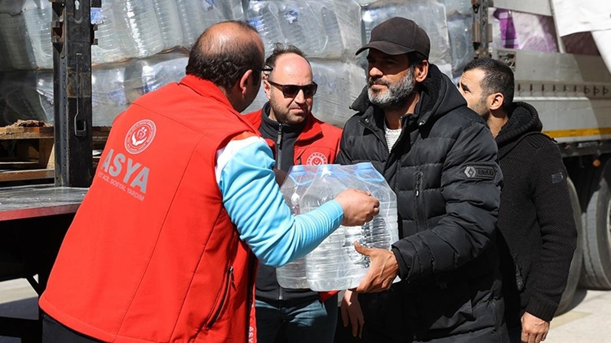 Hatay'da su ve gıda kolileri "Gezici Sosyal Market" tırlarıyla depremzedelere ulaştırılıyor
