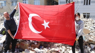 Depremlerde kardeşi, kardeşinin eşi ve yeğenlerinin yanı sıra ev ve iş yerlerini de kaybettiğini anlatan Aydın, dükkanlarından sağlam kalan birkaç parça eşyayı kurtarmayı amaçladığını ancak sonrasında aklına Türk bayraklarının geldiğini ifade etti.