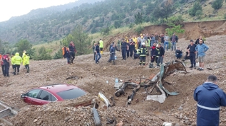 Toprak altında kalan araçlarda 1 kişinin cesedine ulaşıldı, 1 kişi de yaralı çıkarıldı.