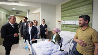 Hastaların taleplerini dinleyen, onlara moral veren Akar, 6 Şubat depremlerinin hemen ardından başta Cumhurbaşkanı Recep Tayyip Erdoğan olmak üzere bakanların, valilerin ilgili tüm kurum ve kuruluşların ilk andan itibaren harekete geçtiğini aktardı.