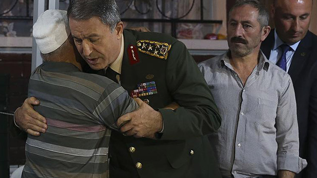 Genelkurmay Başkanı Orgeneral Hulusi Akar, Van'ın Erciş ilçesinde bölücü örgüt mensuplarınca düzenlenen saldırıda şehit düşen jandarma er Eyüp Öksüz'in Ankara'da evine taziye ziyaretinde bulundu.