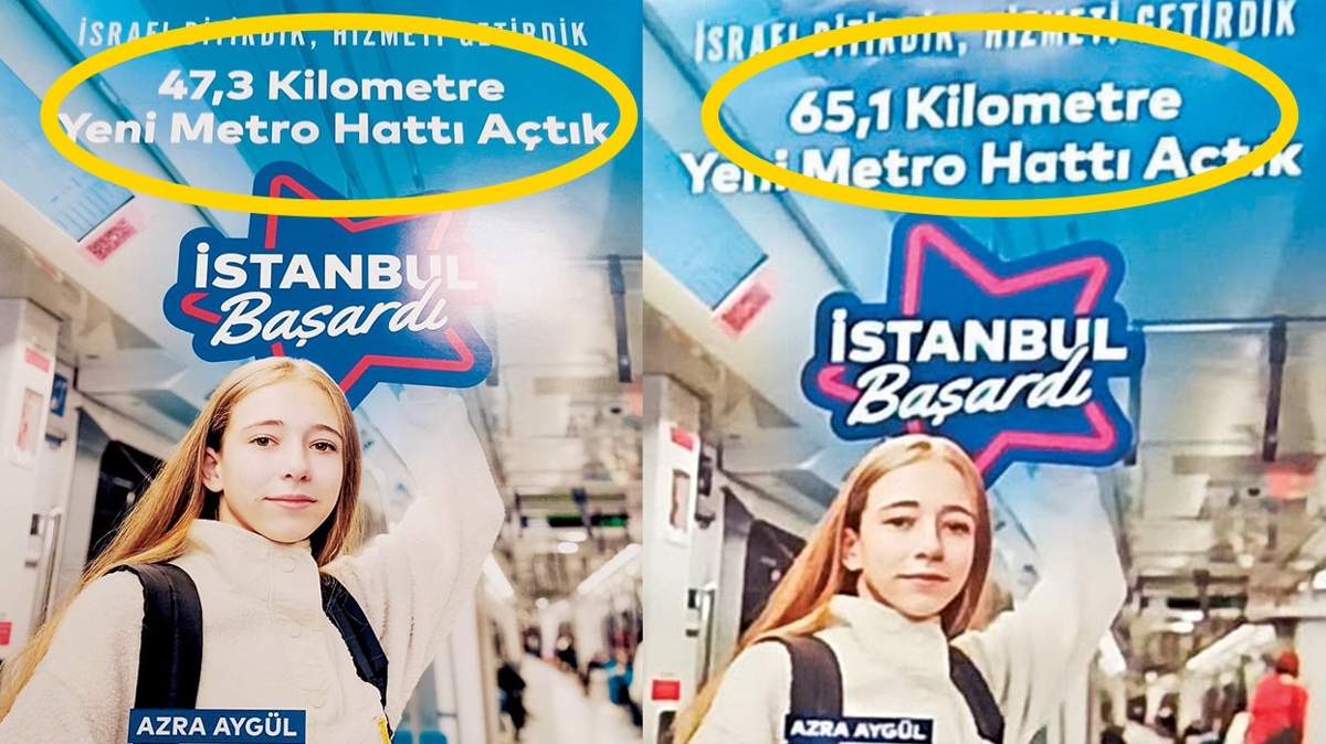 İBB'nin metro afişleri birbirini tutmadı. Bir afişte 47,3 km, başka afişte ise 65,1 km afişi kafaları karıştırdı.
