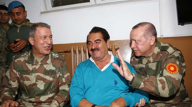 Türküye karakoldaki askerler de eşlik ederken, İbrahim Tatlısesin yanındaki Cumhurbaşkanı Recep Tayyip Erdoğan ile Genelkurmay Başkanı Orgeneral Hulusi Akar bu sözlere tebessüm ile karşılık verdi.