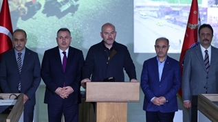 Bakan Soylu'ya, açıklaması sırasında Vali Süleyman Elban, Emniyet Genel Müdürü Mehmet Aktaş, İl Emniyet Müdürü Doğan İnci ve İl Jandarma Komutanı Albay Bilgihan Yeşilyurt eşlik etti.