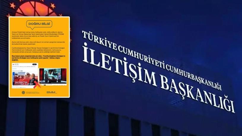 İletişim Başkanlığı Dezenformasyonla Mücadele Merkezi (DMM), "Bazı basın yayın organlarında yer alan, 'Cumhurbaşkanı Erdoğan'ın eşi Emine Erdoğan için helikopter pisti yapıldı' iddiası doğru değildir" açıklamasında bulundu.
