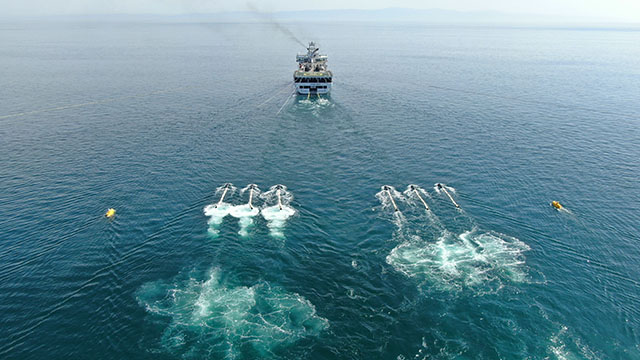 Gemi üzerinde her biri bir otomobil lastiğinin 62 katı basınca sahip 72 hava tabancasıyla 7 saniyede bir hava patlaması yaparak zemine ses dalgaları yolluyor. Bu dalgaları ise içerisinde yapay kulaklar bulunan 8 kilometre uzunluğunda 8 ayrı sismik kabloyla kaydediliyor. Böylece deniz tabanı ve deniz tabanının altı 2 ve 3 boyutlu araştırılıp haritalanabiliyor. Hava tabancalarının yaptığı patlatmalar ise deniz yüzeyinde de görülebiliyor.