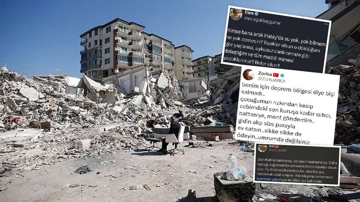 "Kimse bana artık Hatay'da su yok, bilem ne yok demesin!! Yazıklar olsun o döktüğüm gözyaşlarına, uykusuz canlı cenaze gibi dolaştığım ve tüm maddi manevi yaptıklarıma!!! Beter olun."