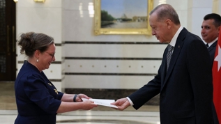 Cumhurbaşkanlığı Külliyesi'ndeki kabulde, Büyükelçi Lillian, Erdoğan'a güven mektubu sundu.