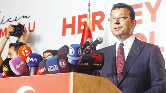 Kesin olmayan seçim sonuçlarının belli olmasının ardından basın toplantısı düzenleyen CHP adayı Ekrem İmamoğlu, “Bugünkü İstanbul Büyükşehir Belediye Başkanlığı seçimi neticeleri, ülkemize ve dünya kenti İstanbulumuza hayırlı olsun, hayırlara vesile olsun” dedi. İmamoğlu şöyle devam etti: “Bugün on binlerce hatta yüz binlerce diye ifade edebileceğim sandık başında görev yapan bütün yol arkadaşlarıma, günün kahramanlarına, Yüksek Seçim Kurulu'nda hizmet eden bütün arkadaşlarıma minnet duygularımı ifade etmek istiyorum.”