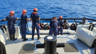 Ekipler, Yunanistan unsurlarınca Türk karasularına geri itilen lastik bot içerisindeki 29 düzensiz göçmeni kurtardı.