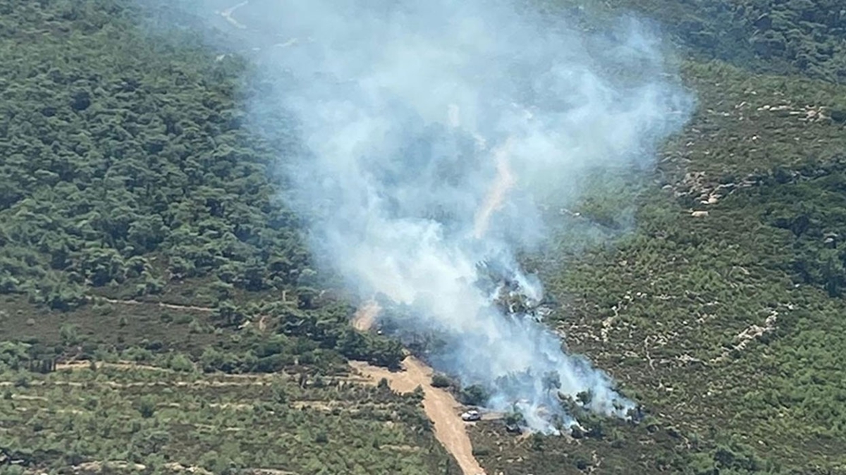 İzmir'in Foça ilçesinde çıkan orman yangınına ekipler müdahale ediyor.