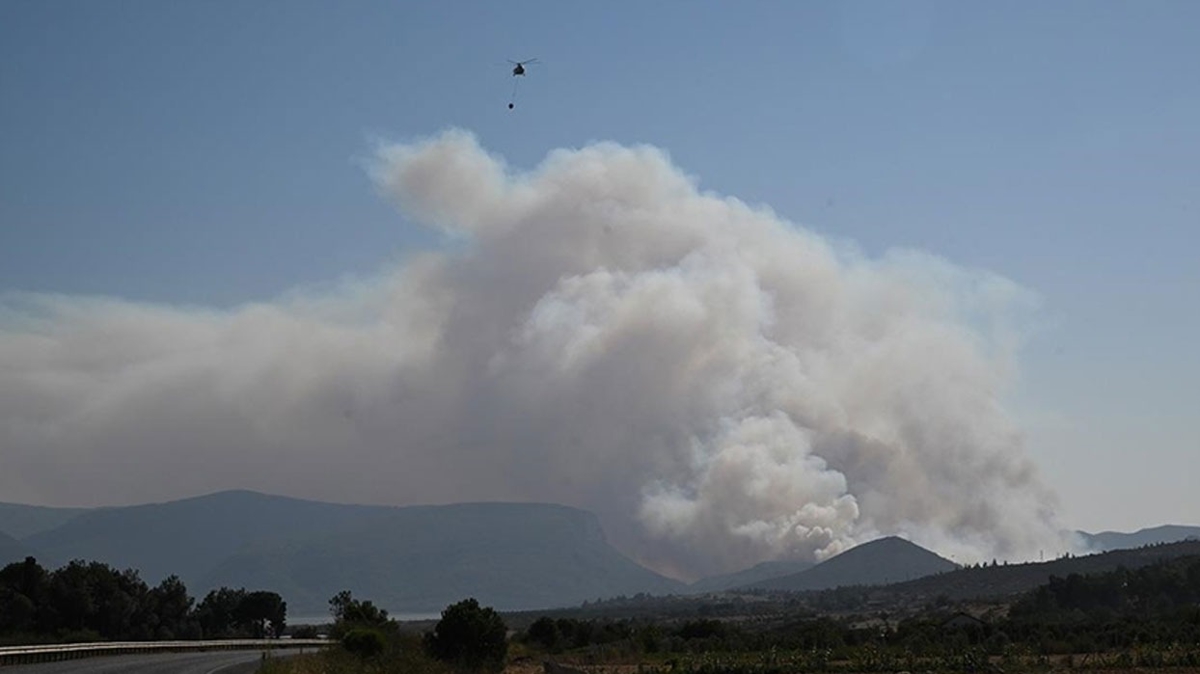 İhbar üzerine bölgeye İzmir Orman Bölge Müdürlüğüne bağlı 6 uçak, 10 helikopter, 23 arazöz, 6 su ikmal aracı, 7 dozer sevk edildi.