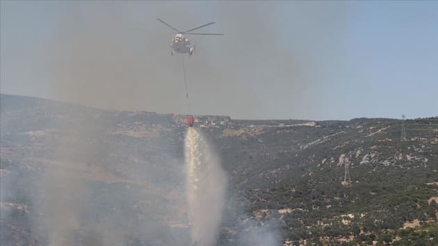 İhbar üzerine bölgeye İzmir Orman Bölge Müdürlüğüne bağlı 2 yangın söndürme helikopteri ile 4 arazöz sevk edildi.