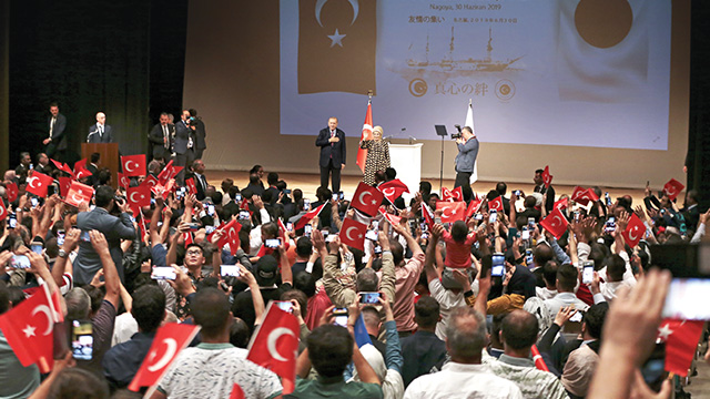Konuşmasında FETÖ'nün Japonya'daki faaliyetlerine ilişkin değerlendirmede bulunan Erdoğan, “Japonya'da FETÖ'ye bağlı okullar, dernekler ve şahıslar hala faaliyetlerini sürdürüyor. 15 Temmuz gecesi 251 insanımızı kalleşçe şehit eden bu örgüt, yurtdışında ülkemize yönelik yoğun bir karalama kampanyası yürütüyor” diye konuştu. Erdoğan, bu örgütün 40 yıl boyunca “himmet, hizmet” diye milletten topladıklarını yüzleri kızarmadan, zerre kadar utanmadan, son 4 yıldır milletin aleyhine kullandığını belirterek “Gözünü hırs, kin ve nefret bürümüş FETÖ'cülerin, ülkemizin itibarına kara çalmasına izin vermemeliyiz. Eli kanlı bu terör örgütüyle mücadelemizde sizlerden destek bekliyoruz. PKK neyse, DHKP-C neyse FETÖ de odur, bunların birbirinden hiçbir farkı yoktur” ifadesini kullandı.