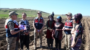 Tarlada çalışan Makbule Yöncel, AA muhabirine, kadın komutanlarla sohbet ettiklerini belirterek, "Kadın komutanlarımız bize KADES'i anlattı, uygulamayı gösterdi. Tohum ekerek bize yardım ettiler." dedi.