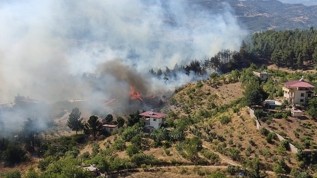 Yerleşim yerlerini de tehdit eden yangına ekipler 6 helikopter, 2 uçak, 20 arazöz ve 90 personelle müdahale ediyor.