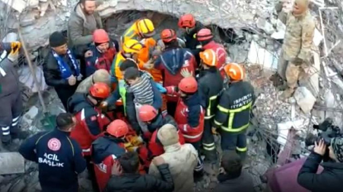Enkazdan sağ çıkarılan çocuklar, sağlık ekiplerine teslim edildi.