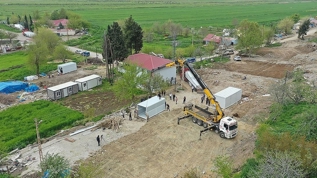 Okumuş, Kuyumcular Mahallesi'ndeki evlerin neredeyse tamamının yıkıldığının altını çizerek, "Bugün itibariyle katlanabilir konteynerler inmeye başladı. En kısa süre içerisinde ova köyleri diye tabir ettiğimiz 13 kırsal mahallenin tamamını bitireceğiz." dedi.