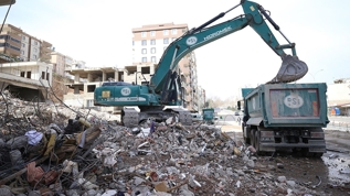 Kahramanmaraş merkezli 6 Şubat'taki depremler sonrası ağır hasarlı olduğu tespit edilen binaların yıkımı ile enkaz kaldırma çalışmaları devam ediyor.