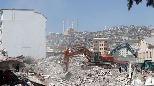 Kahramanmaraş merkezli 6 Şubat'taki depremler sonrası ağır hasarlı olduğu tespit edilen binaların yıkımı ile enkaz kaldırma çalışmaları sürüyor.