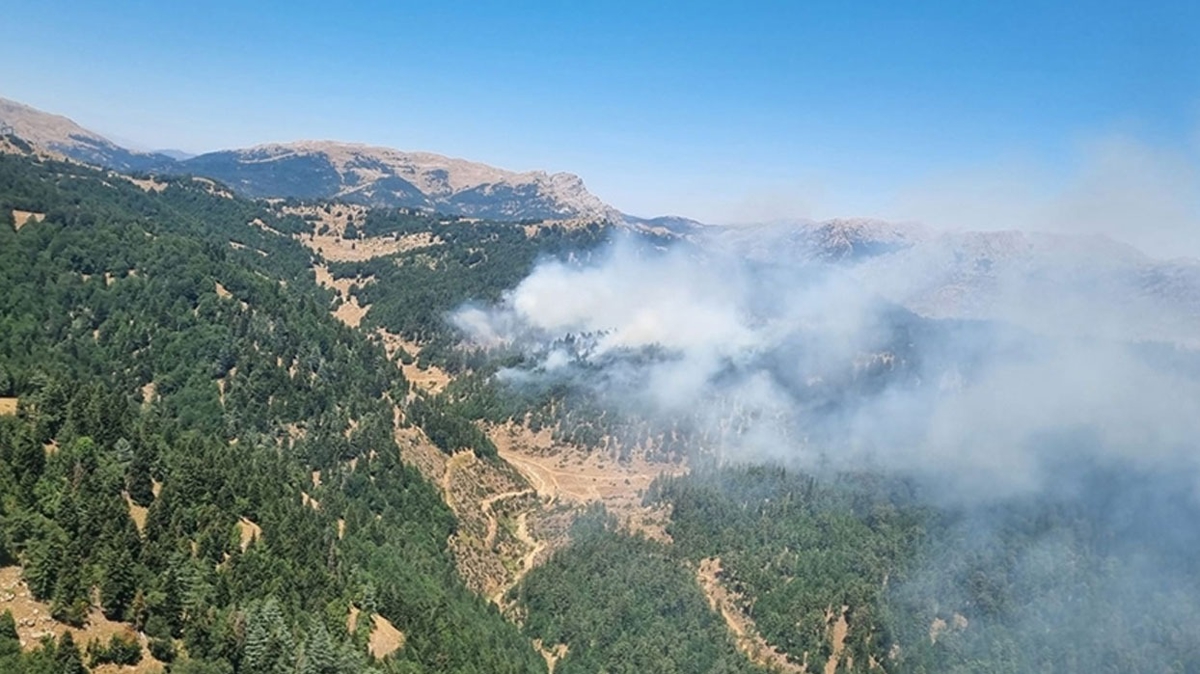 Kahramanmaraş'ın Andırın ilçesinde çıkan orman yangınına havadan ve karadan müdahale ediliyor.