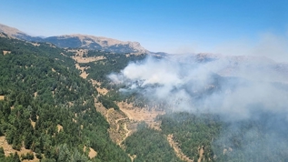 Ekipler, sarp ve kayalık bölgedeki yangını kontrol altına alabilmek için havadan ve karadan müdahaleyi sürdürüyor.