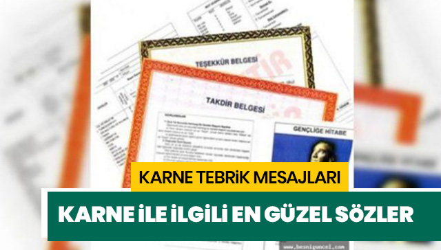 Karne tebrik mesajları, karne ile ilgili en güzel sözler yoğun olarak araştırılıyor. Okulların ilk dönemi bugün sona eriyor. İlkokul, ortaokul ve lise öğrencileri bugün birinci dönemin karnelerini alıyor. 15 günlük tatil hakkını kazanan öğrencileri tebrik etmek isteyen aileler, eş, dost, akraba ve arkadaşlar arama motorlarında karne tebrik mesajlarını, karne ile ilgili en güzel sözleri araştırmaya başladı. Vatandaşlar buldukları en güzel karne tebrik mesajlarını hem tanıdıklarına göndermek hem de sosyal medya hesaplarından paylaşmak istiyor. En güzel karne tebrik mesajları ve karne ile ilgili en güzel sözler haberimizde yer alıyor..