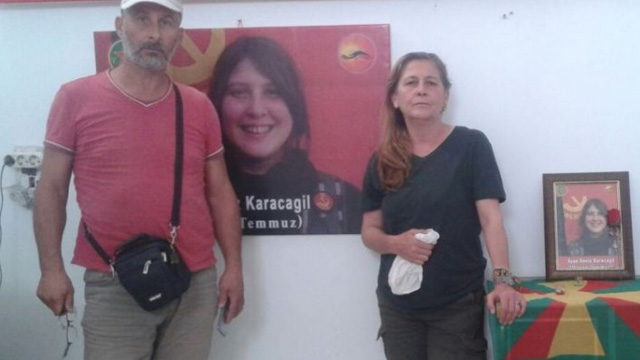Kırmızı fularlı lakaplı Terörist Ayşe Deniz Karacagil'in ailesi, bugün Murşitpınar Sınır Kapısı’ndan geçerek Kobani'ye gitti.